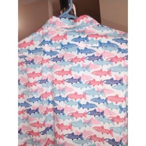 J. Crew Men's (L) Red & Blue Fish Print Shirt Slim Fit Short Sleeve Button Up
