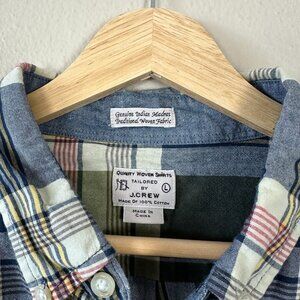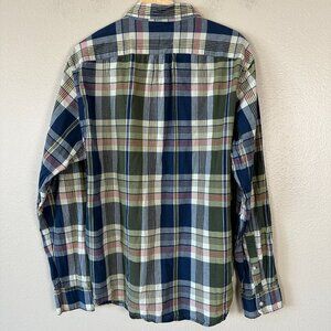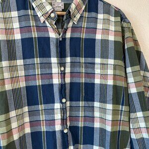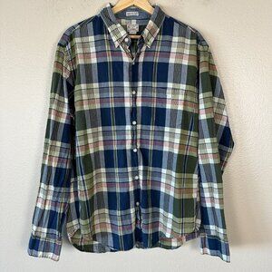 J. Crew Mens Large Button Down Shirt Madras Fabric Heritage Plaid Blue Green Red