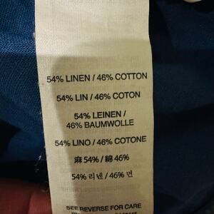 J. Crew Mens Linen Cotton Blue Leafy Button Up Long Sleeve Shirt Size Large NEW