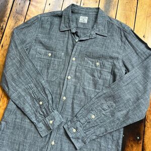 J Crew Men’s Medium Gray Chambray Button Down Shirt Casual Cotton Buttons.