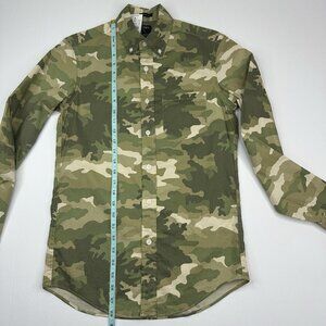 J. Crew Factory men's size XS shirt, it is a camouflage print, Slim Flex fit, lightweight fabric, easy care, chest pocket, button down front, stretch, long button sleeves, and spread collar. Care machine wash cold line dry. Materials 98% cotton, 2% elastane. Condition is preloved new with tags as shown in pictures. Please preview the measurements to ensure fit.