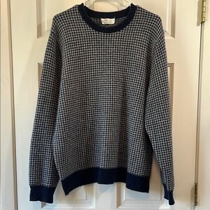 J. Crew Men's Navy & Gray Houndstooth Lambswool Blend Sweater - Size XL (Approximate - see measurements)