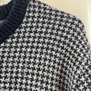 J. Crew Men's Navy & Gray Houndstooth Lambswool Blend Sweater - Size XL (Approx)