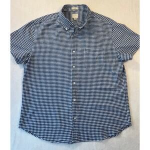 J Crew Mens Navy White Shirt Sleeve Oxford Button Up Slim Fit XL