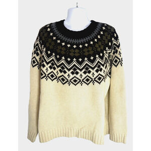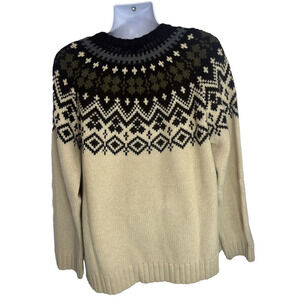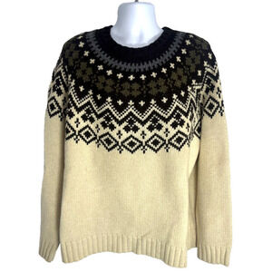 J. Crew Mens Nordic Fair Isle Sweater Size XL Lambswool Alpaca Tan Brown Gray