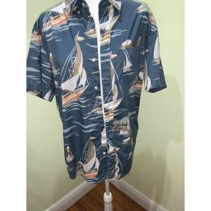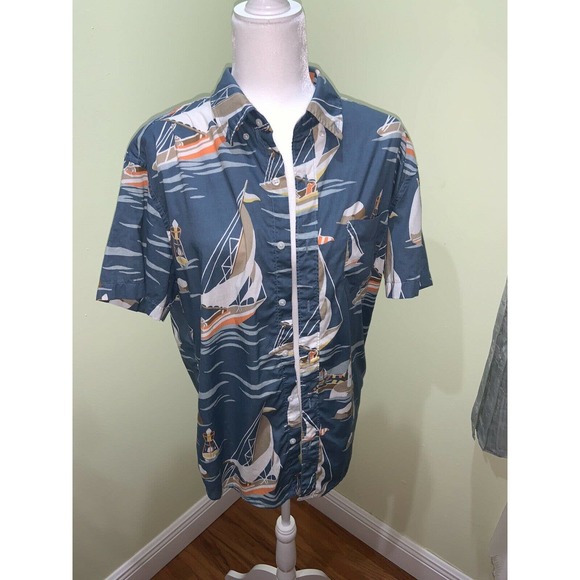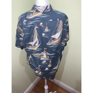 J. Crew Mens Sailboat Lighthouse Blue Shirt size Large