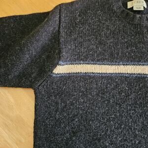 J. Crew Men's Shetland Wool Sweater Sz M Dark Gray Tan Stripe