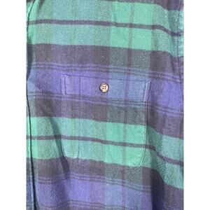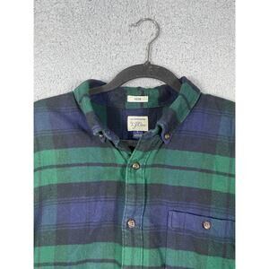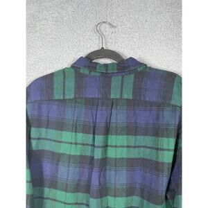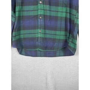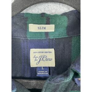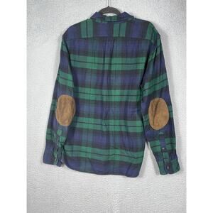 J. Crew Mens Shirt Size L Blue Green Slim Fit Elbow Patch Flannel Button Up.