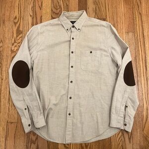 J. Crew Mens Shirt Size M Tan Button Down Elbow Patch Collared