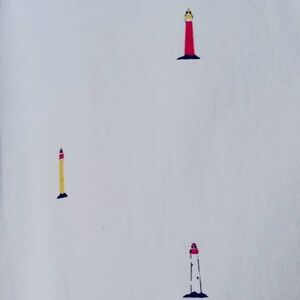 Stylish white shirt with embroidered lighthouses Perfect for casual outings. Comfortable and trendy.