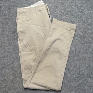 J Crew Mens Size 32x34 Khaki Slim-Fit Flat Front Flex Tan Chino Pant Small Stain