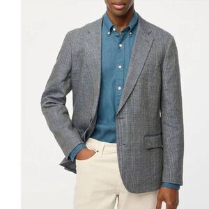 J Crew Men's Slim Fit Thompson Plaid Linen Blazer Front Pockets
