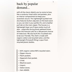 J Crew Men’s Sussex Quilted Vest