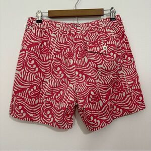 J Crew Men’s Tropical Red White Print Swim Shorts size Medium