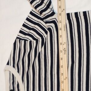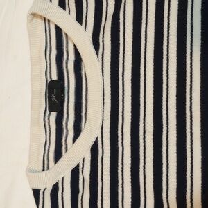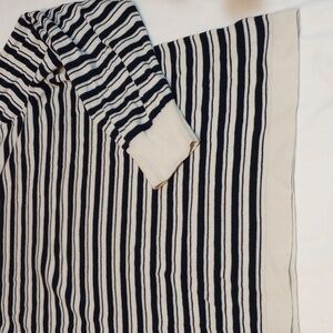 This is a JCrew Men's long sleeve tee in a size Large. It has blue and cream stripes and is 100% cotton. It is in good condition.