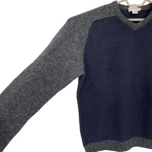 J Crew Mens Vintage 90's 100% Wool V Neck Sweater Black Gray Size Large
