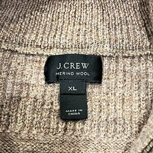 J Crew Men's Wool 1/4 Zip Sweater, Leather Elbow Patches, Camel Brown, L
