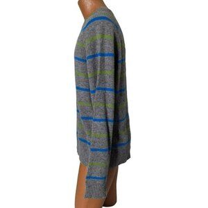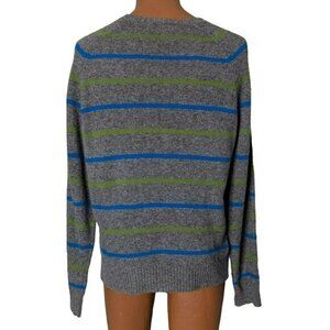 J Crew Mens Wool Sweater Grey Multi Stripe Crew Neck Size Large Preppy Casual