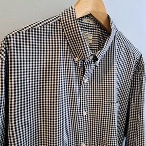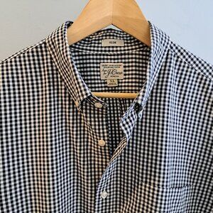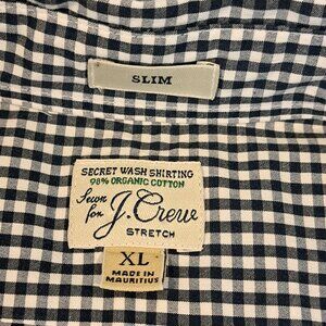 J. Crew Men's XL Slim Fit Long Sleeve Button Down Plaid Shirt Style #AA438. 98% organic cotton, 2% elastane. Button down collar. Single chest pocket. Slim fit. Black and white plaid. Shirt is in excellent used condition. Please see photos for details and measurements. This is a slim fit shirt.