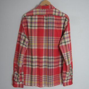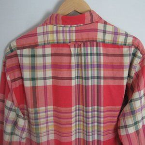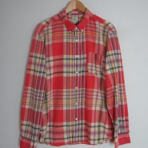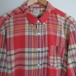 J. Crew Mens XL Slim Red LS Plaid India Madras 100% Cotton Button Down Shirt