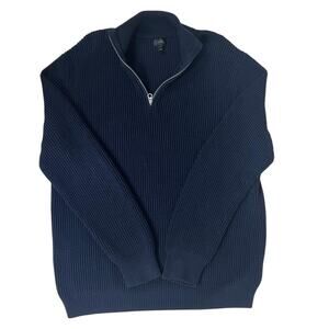 J. Crew Men's XL Waffle-Knit Half-Zip Cotton Pullover Sweater Dark Indigo