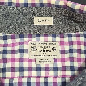 J. Crew Men's purple gingham button up size L office career professional preppy. Great pre-owned condition from smoke free and pet free home. *SIZE TAG IS MISSING SO PLEASE CHECK MEASUREMENTS