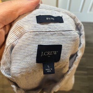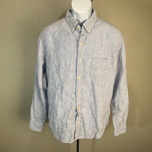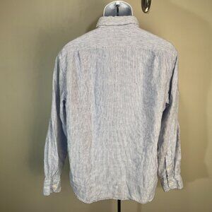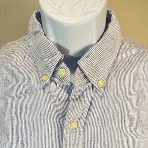J. Crew Men's white and blue striped Linen Blend Slim Fit l/s shirt Large L EUC