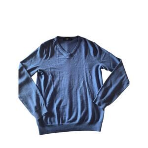 J Crew Mens/Teen Merino Wool Blue V Neck Sweater Size Medium Preppy Classic