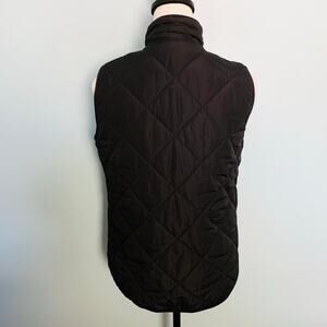 A classic layering piece for cooler weather! This quilted vest is in black with a gold zipper front. Black patch pockets on the front will hold your phone, gloves or other essentials! Lined. In excellent used condition