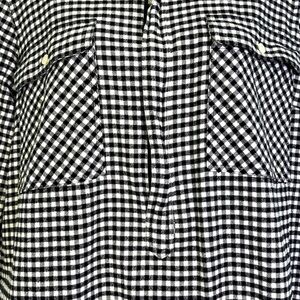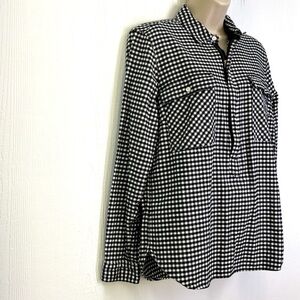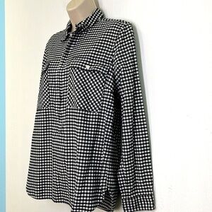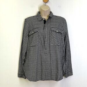 J Crew - Mercantile Black & White Gingham Plaid Long Sleeve Half Flannel Top Size Small