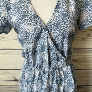 J. Crew Mercantile Blue & White Chambray Ruffle Faux Wrap Dress