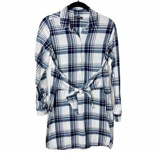 J. Crew Mercantile Blue White Plaid Cotton Flannel Tie Front Shirtdress Size XS