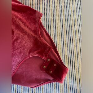 long sleeve bodysuit in dark pink velvet with buttons to close new with tags