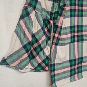 J. Crew Mercantile Green and Pink Plaid Flare sleeve top in great condition. No rips or stains. The button on the back is a bit loose but functioning.