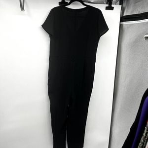 J. Crew Mercantile Jumpsuit 4 V-Neck Short Sleeve Button Front Pocket Black NWT