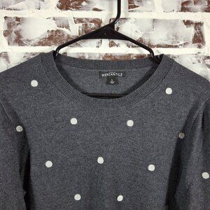 J Crew Mercantile Large Pullover Sweater Grey Silver Polka Dots Merino Wool