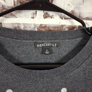 J Crew Mercantile pullover lightweight sweater. Grey with silver polka dots. Merino wool blend. Large. Armpit to armpit is 20 inches. Shoulder to hem is 25 inches. No holes or stains.