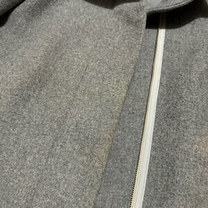 This coat is in good overall condition. Some possible makeup discoloration as pictured.. Light gray wool blend fabric. Full zip winter pea coat. City style J6140. Women’s six 8. 3.8.24