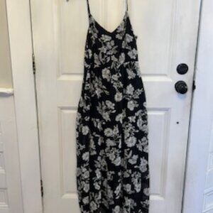 J. Crew Mercantile Maxi Dress Black/White Floral Tiered Strappy, Size 8. Lined inside.