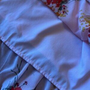 Super pretty baby pink with the sunburst bouquet print on front. Perfect for summer!