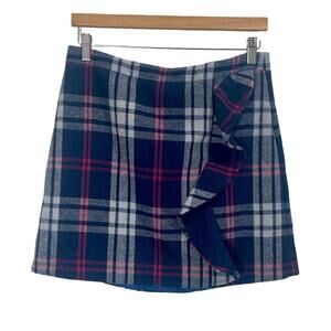 J. Crew Mercantile Navy Blue Plaid Double Serge Ruffle Wool Mini Skirt Size 8