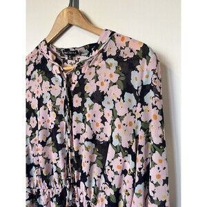 J Crew Mercantile Pink Floral Long Sleeve Drapey Midi Dress Size Medium