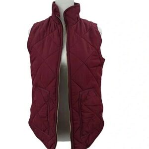 J Crew Mercantile Quilted Puffer Burgundy Wine Maroon Vest Size XS