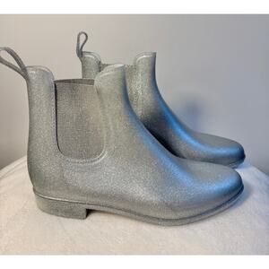 J Crew Mercantile Silver Gray Sparkle Rainboot Rubber Ankle Boot Wellie 10 NEW
