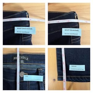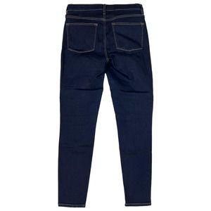 Size 30. Dark wash blue color. Five-pocket styling high rise skinny leg. Fabric blend is 87% Cotton, 12% polyester and 1% Elastane.