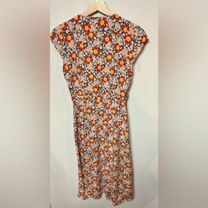 J Crew Wrap midi dress in colorful floral print cottagecore peasant nostalgic feminine romantic. Perfect for any occasion in excellent condition