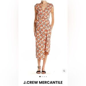 J Crew Mercantile True Wrap Midi Floral Dress Peasant Cottagecore Nostalgic