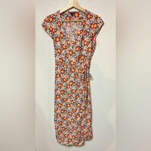 J Crew Wrap midi dress in colorful floral print cottagecore peasant nostalgic feminine romantic. Perfect for any occasion in excellent condition