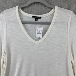 J Crew Mercantile Tunic Top M Ivory Stretch V-Neck Long Sleeve Ruffle Hem New