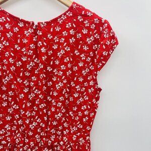 J Crew Mercantile Women's V Neck Ruffle Floral A Line Dress in Red/White Style J4401